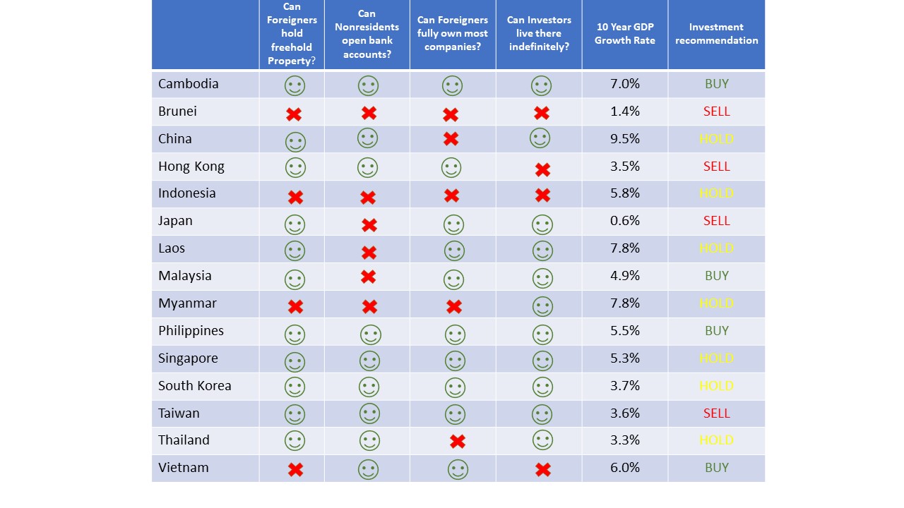 Don't get us wrong: Thailand is a big country and it's not impossible to make money with stocks or real estate. But its annual GDP growth rate is one of the lowest in Southeast Asia, barely above that of the US over the past decade.